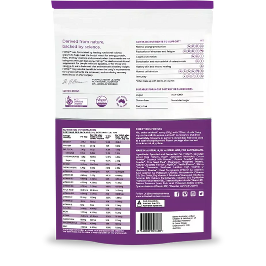 Activated Nutrients Organic Fill Up (To Support & Nourish) Chocolate 420g
