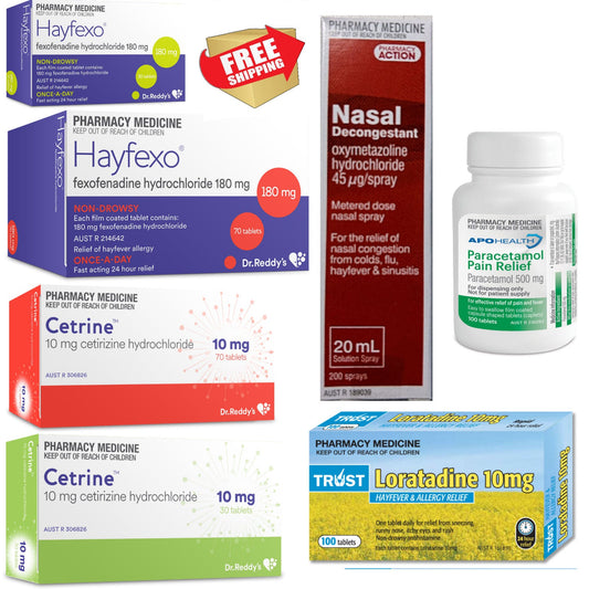3 x 140 Dose Mometasone + Bonus Item (Generic Zyrtec, Claratyne, Paracetamol, Iburprofen)
