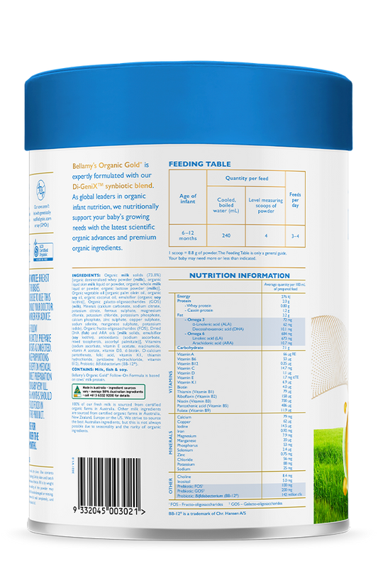 Bellamy's Organic Gold+ Step 2 Follow-On Formula 6 - 12 months 800g ( expiry 8/24 )