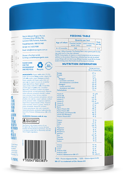 Bellamy’s Organic Beta Genica-8 Step 1 Infant Formula 0 - 6 Months 800g