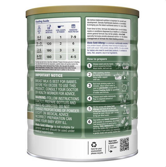 Alula Gold Allergy Infant Rice Formula 0-12 Months 800g