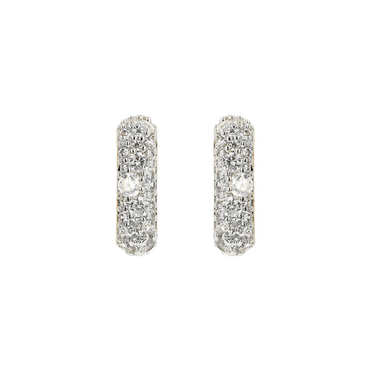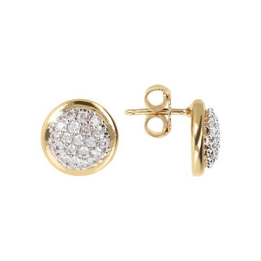 Golden Stud Earrings with Pavé in Cubic Zirconia