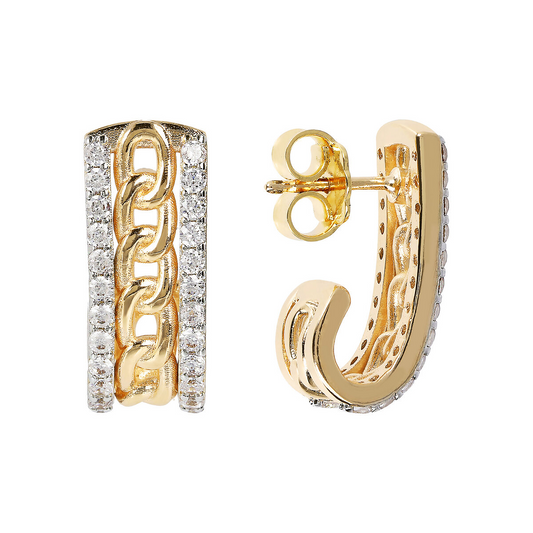 Golden Stud Earrings with Chain Link and Cubic Zirconia