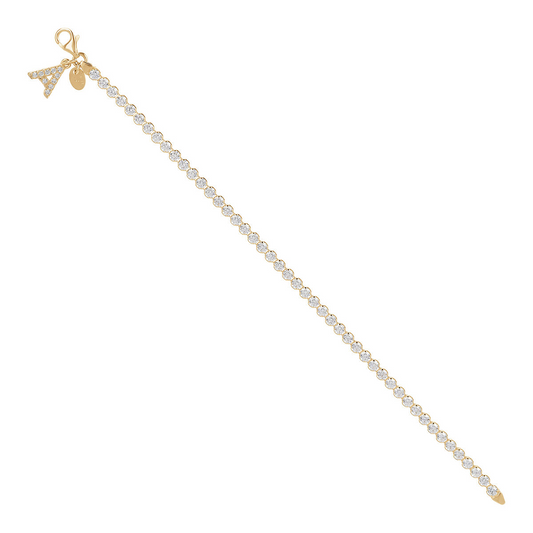 Golden Tennis Bracelet in Cubic Zirconia with Pavé Letter Pendant