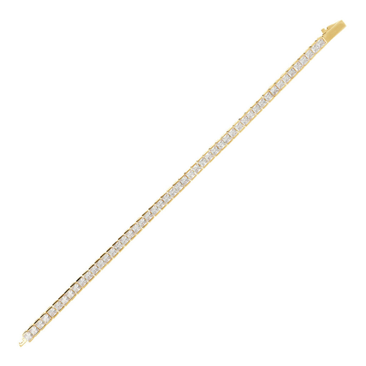 Golden Tennis Bracelet with Cubic Zirconia Square Shape