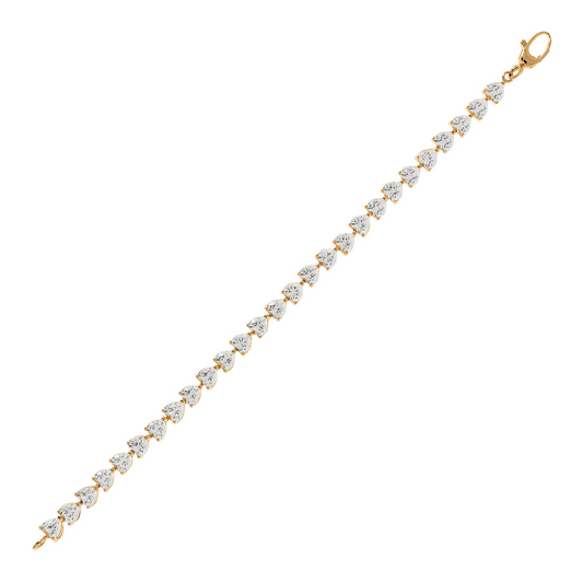 Golden Tennis Bracelet with Cubic Zirconia Hearts
