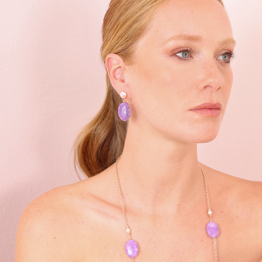 Drop Earrings with Freshwater Pearls and Oval Purple Amethyst