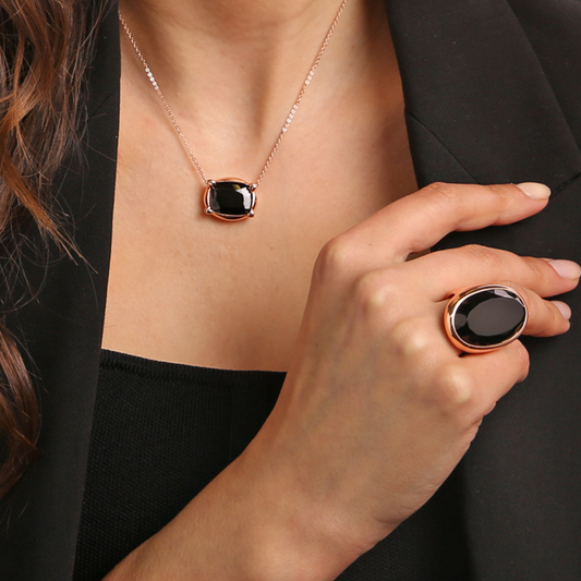 Chevalier Ring with Faceted Square Natural Stone and Pavé