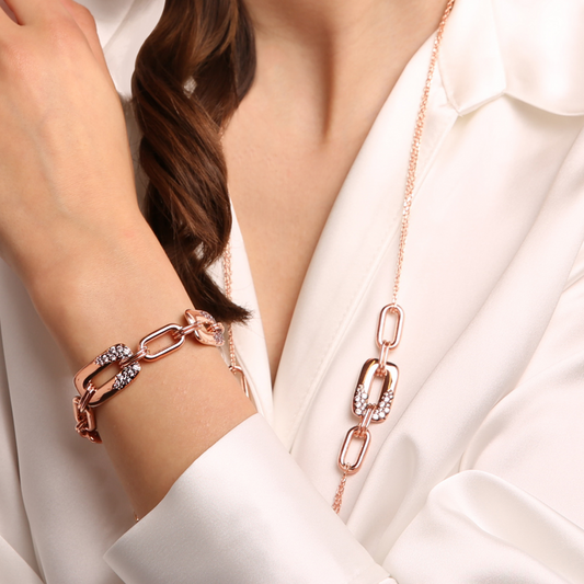 Alternate Link Bracelet with Pavé Element in Cubic Zirconia