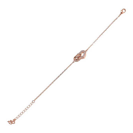 Forzatina Chain Bracelet with Double Pavé Heart Pendant and Oval Link