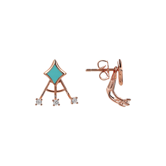 Enamelled Stud Earrings with Étoile and Small Light Points in Cubic Zirconia