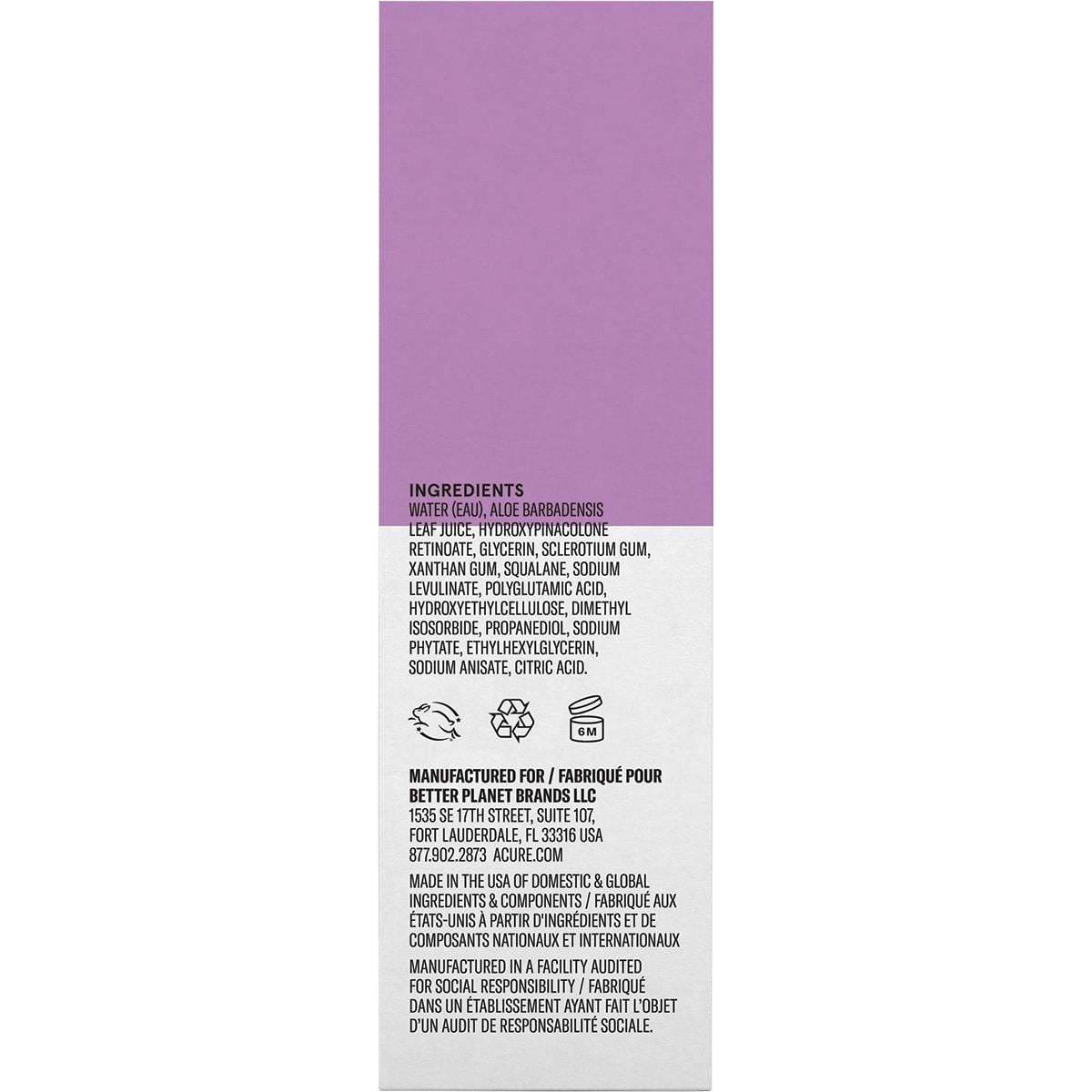 Water (Eau), Aloe Barbadensis Leaf Juice, Hydroxypinacolone Retinoate, Glycerin, Sclerotium Gum, Xanthan Gum, Squalane, Sodium Levulinate, Polyglutamic Acid, Hydroxyethylcellulose, Dimethyl Isosorbide, Propanediol, Sodium Phytate, Ethylhexylglycerin, Sodium Anisate, Citric Acid.AR142CPP