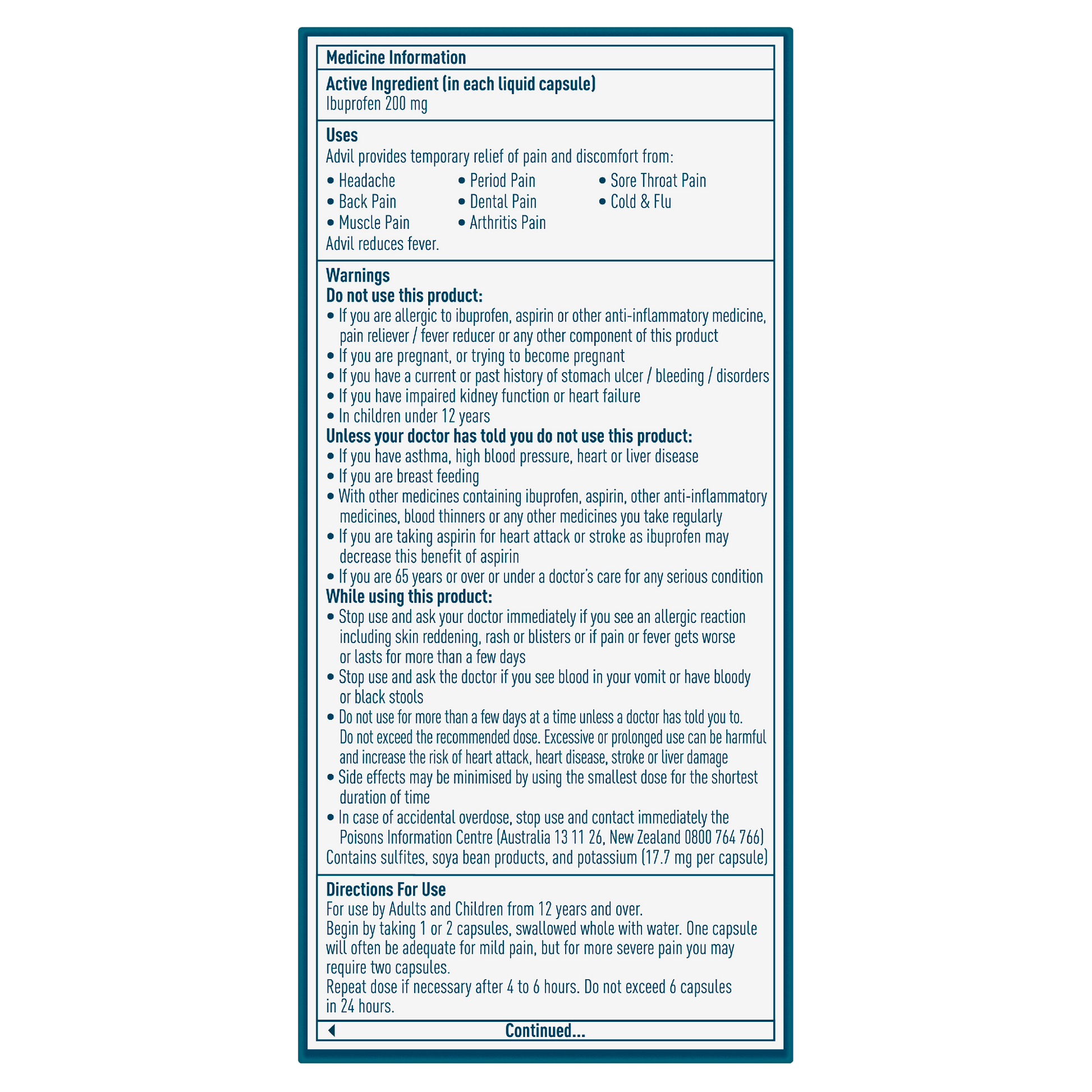 Advil Liquid Capsules for Fast & Effective Pain Relief 200mg Ibuprofen 40 Pack