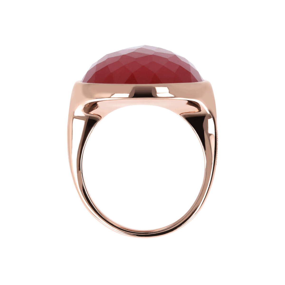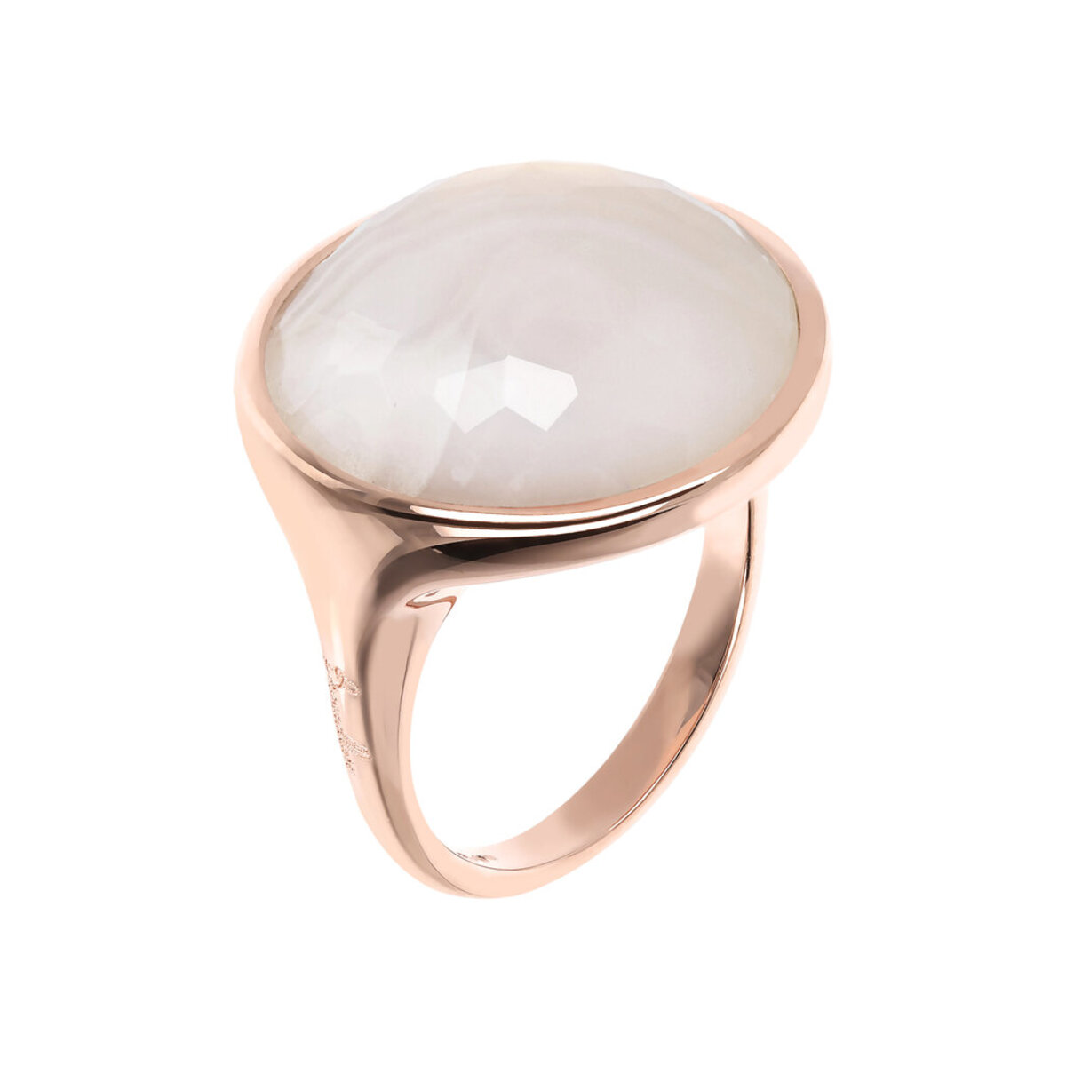 Bronzallure cocktail ring made on a Golden Rosé base, 18kt rose gold plated, embellished with a round natural stone (1.8 cm) with bright colors and a faceted surface.
