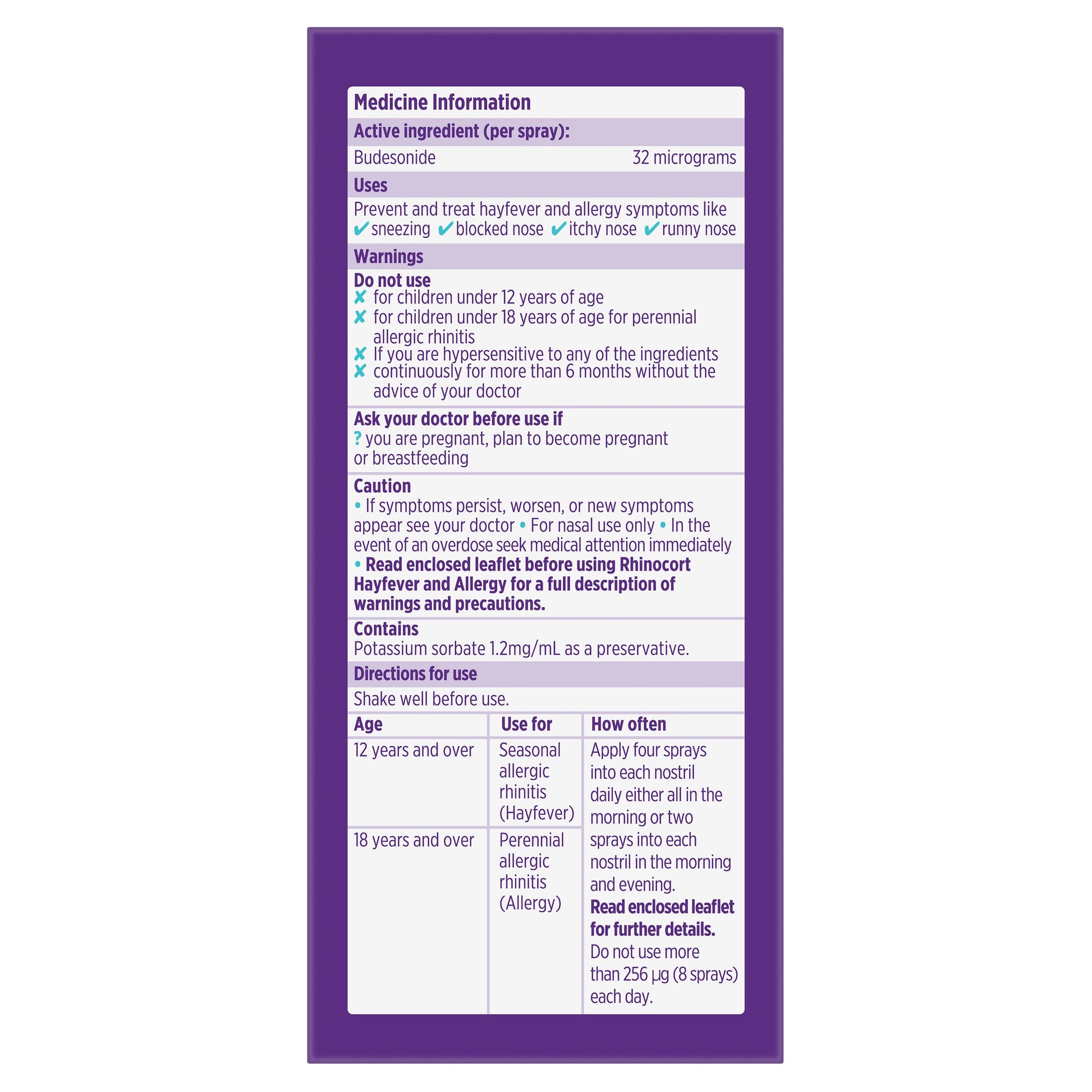 Rhinocort Hayfever & Allergy Non-Drowsy Nasal Spray Original prevents & relieves sneezing, blocked, runny and itchy nose.