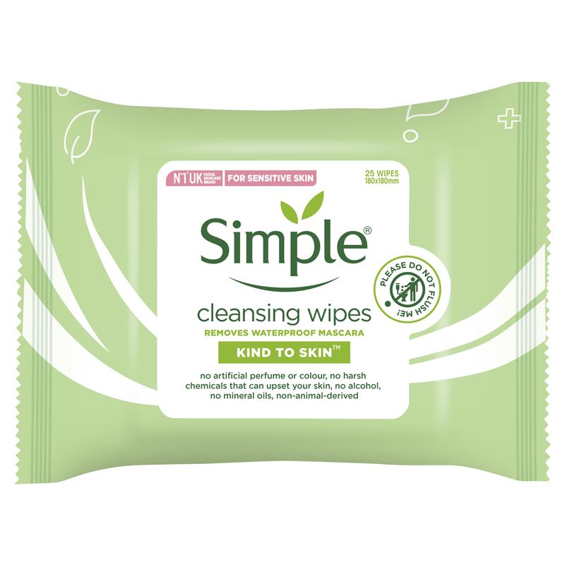 • Simple Kind To Skin Cleansing Facial Wipes lift away dirt, impurities and removes make-up effectively, even waterproof mascara, while being gentle on your skin.• Instantly refreshes and hydrates your face leaving skin feeling clean and refreshed.